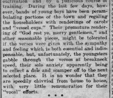 “…bands of young boys have been perambulating portions of the town and regaling the householders with renderings of carols and ‘vessel-cups’…